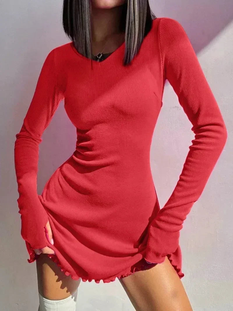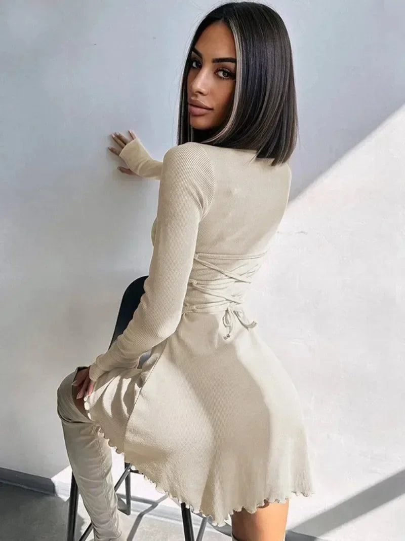 Sexy Tunics High Waist A-line Short Streetwear Long Sleeve Lace-up