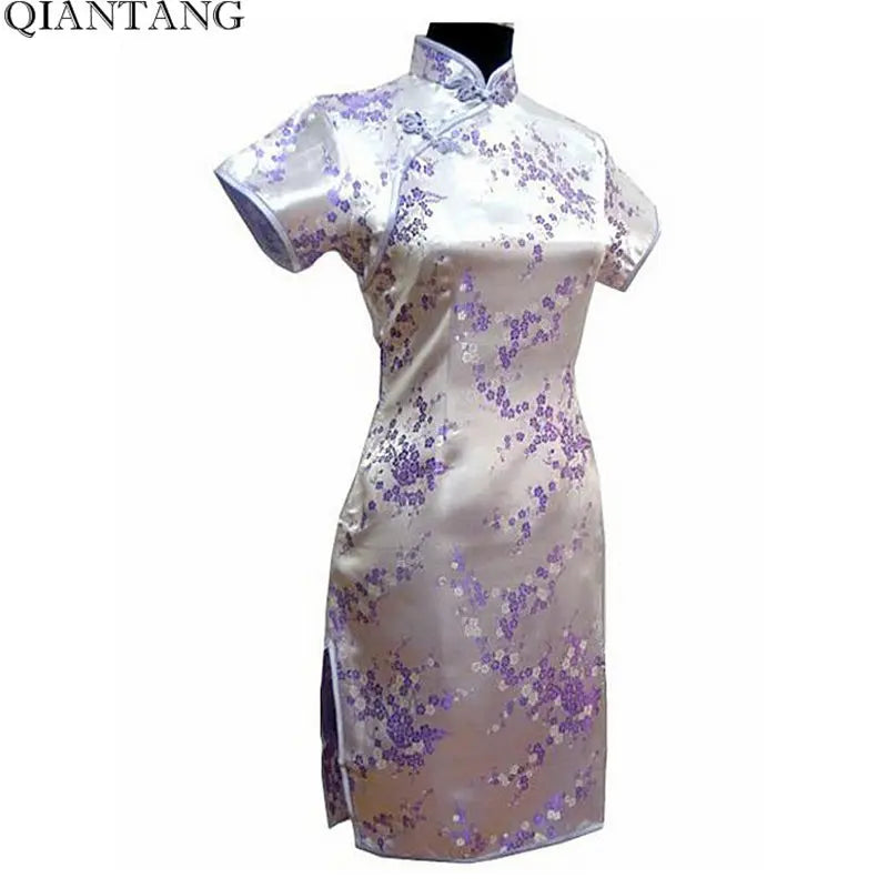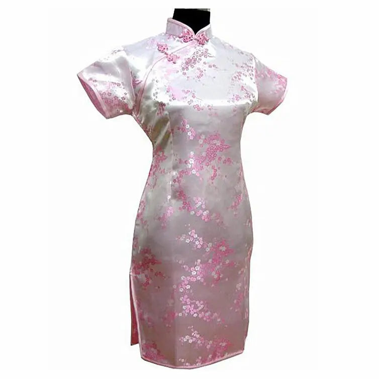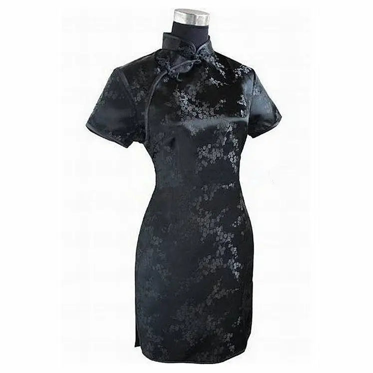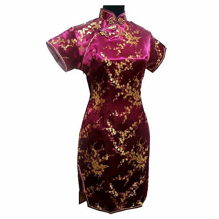 Chinese Style Short Cheongsam Traditional Women's Satin Mini Qipao Dress