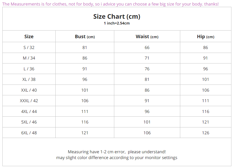 Size: S M L XL XXL XXXL 4XL 5XL 6XL