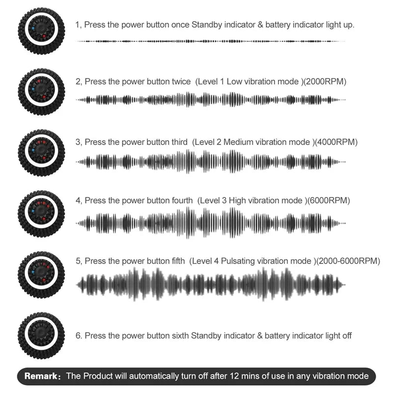 - Customize your massage experience with four distinct vibration intensities ā Low, Medium, High, and Pulsating ā catering to your unique needs and preferences. Whether you're warming up or soothing sore muscles, this massage ball delivers targeted relief with precision.