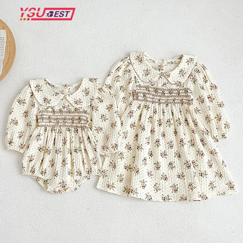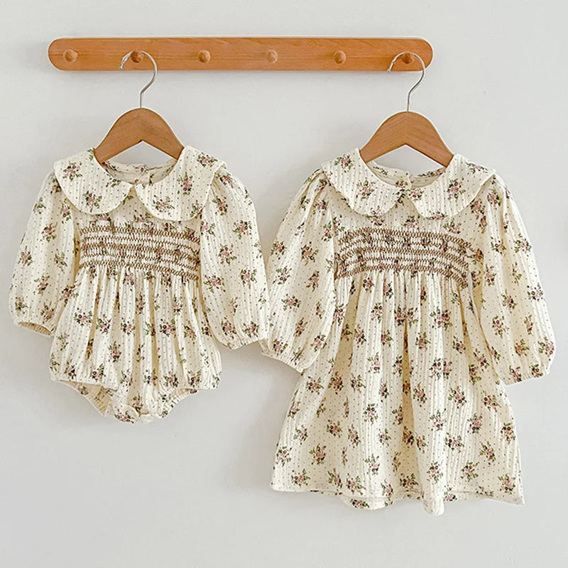 Matching Cotton Spring Sister Princess Romper Long Sleeved