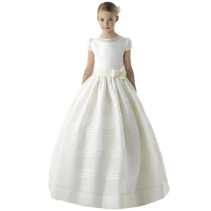 Vintage Ivory Satin Pearls Wedding Birthday Party Princess Dress Or Flower Girl