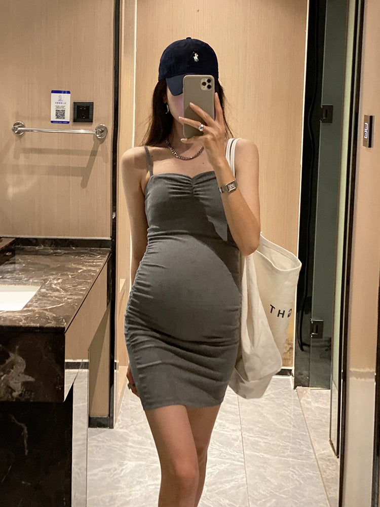 Women's Maternity Summer Suspender Dress With Chest Pad Pure Cotton