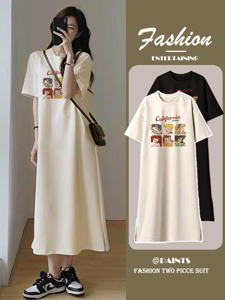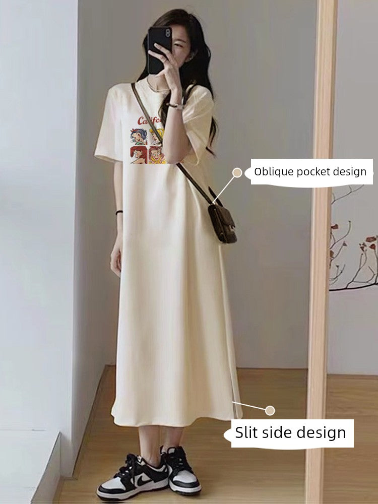 Western Style Fashion Maternity T-shirt Overknee Long Summer Skirt Slit Dress - 2024 New Arrival