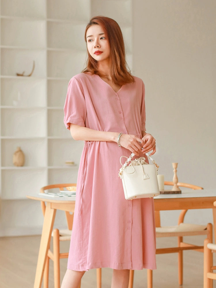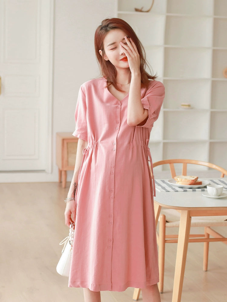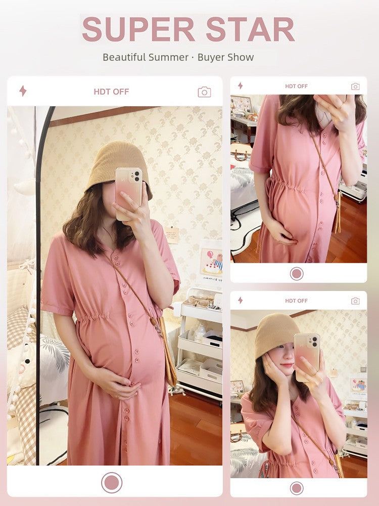 Modal Short-Sleeved Breastfeeding Maternity Summer Dress: New Arrival 2024 Mid To Long Length