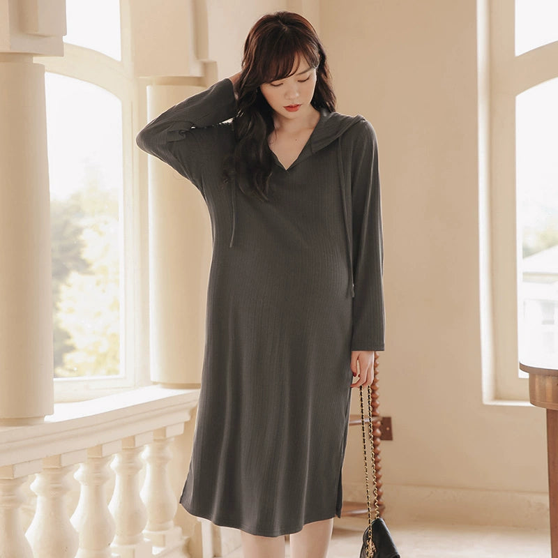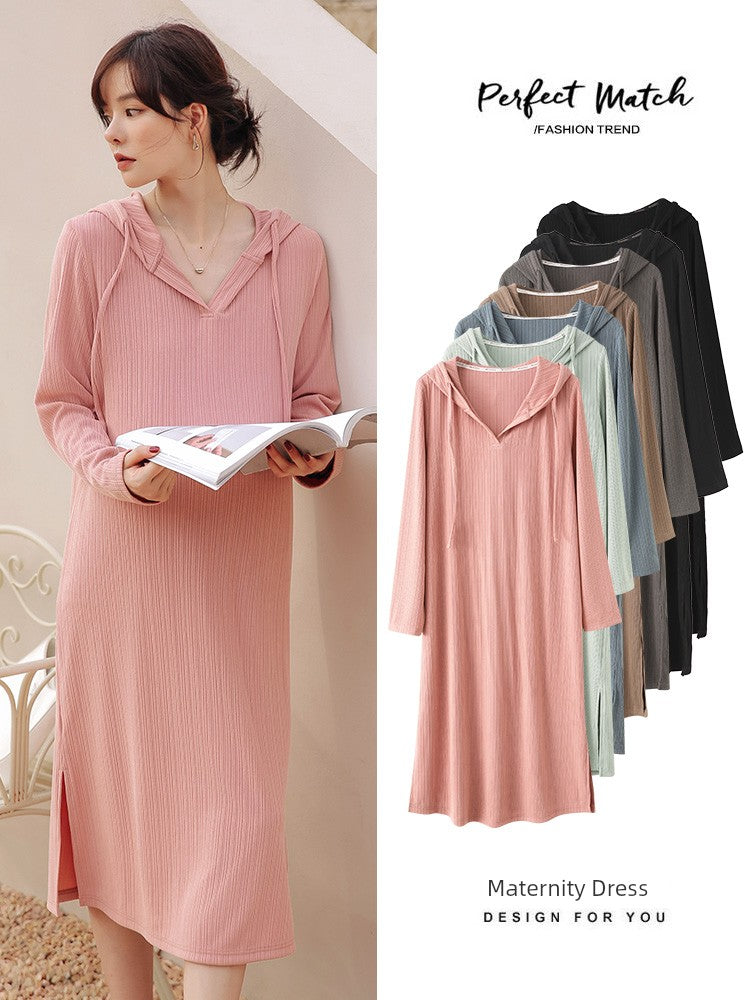 Hoodie Pull Tie Maternity Dress In Several Colors