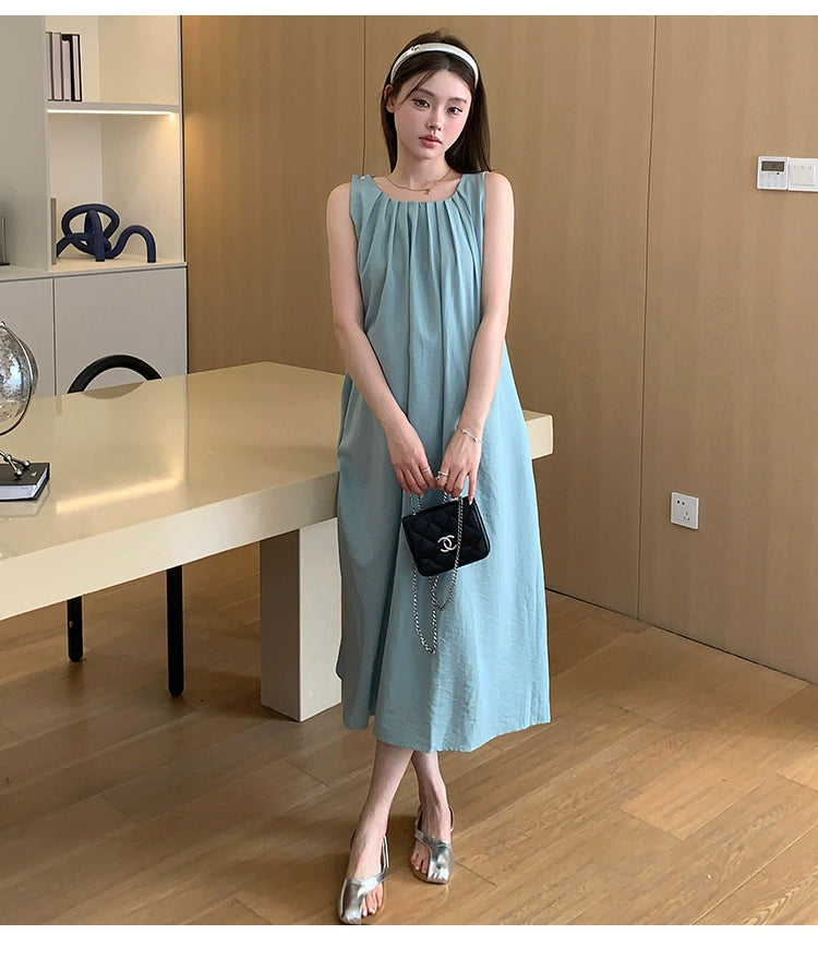 Pleated Neckline Western Style Fashion Sleeveless Vest Dress: Maternity Summer Dress 2024 New Arrival