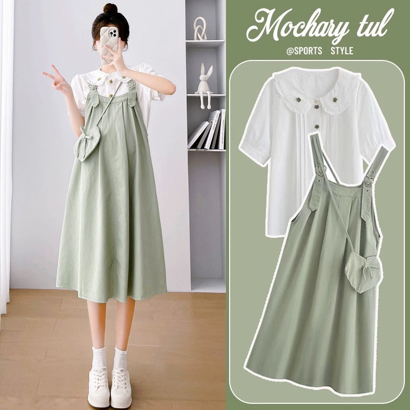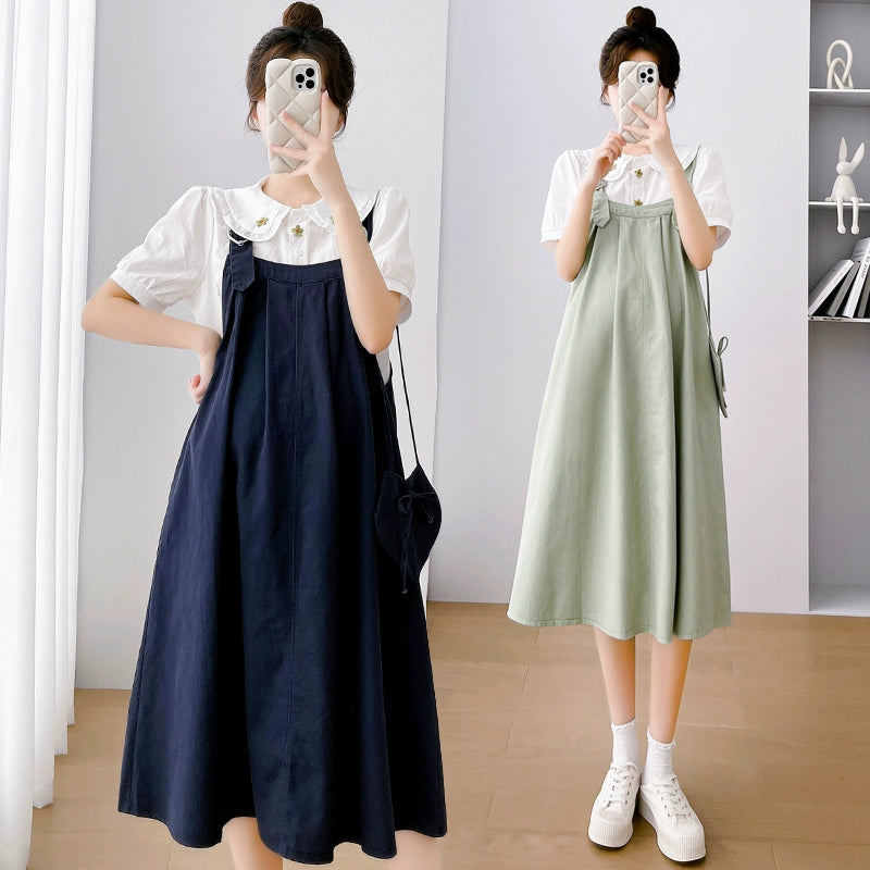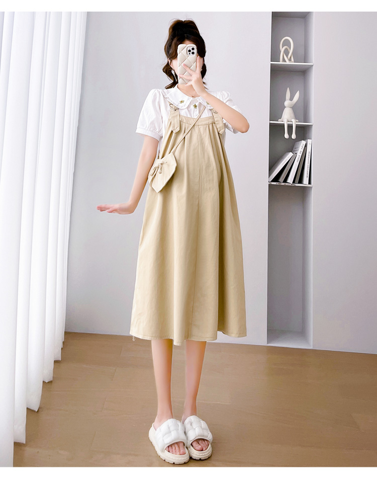 Maternity Summer Dress Dress Pregnant Women Wear Suspender Skirt Two-piece Set Fashionable Stylish Fashionable Suit High Quality Skirt