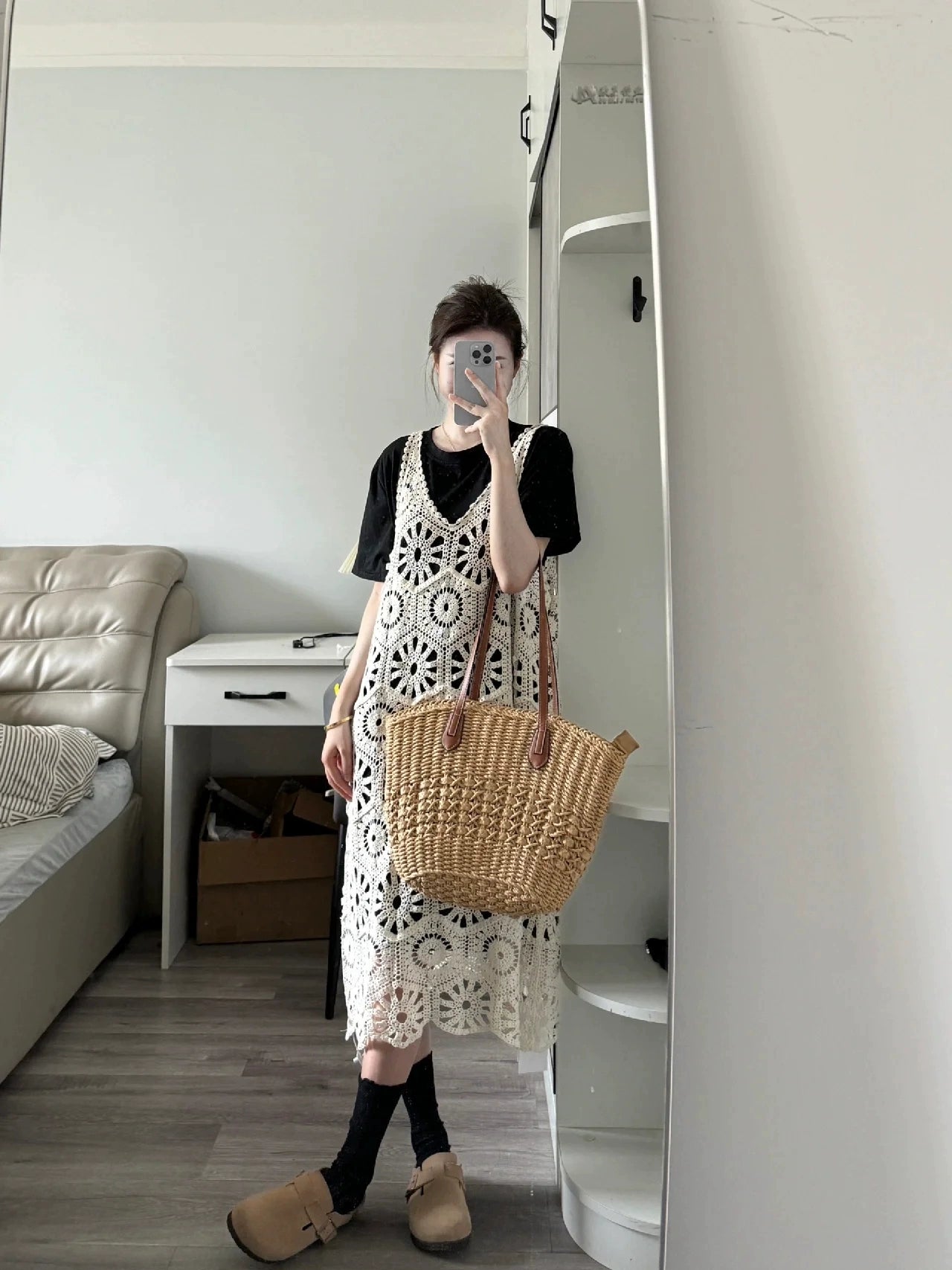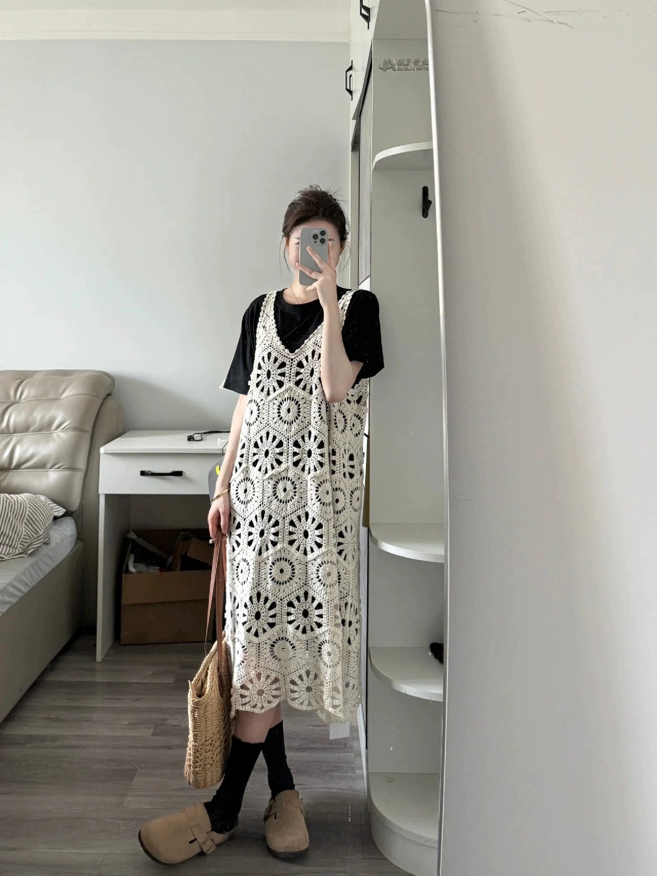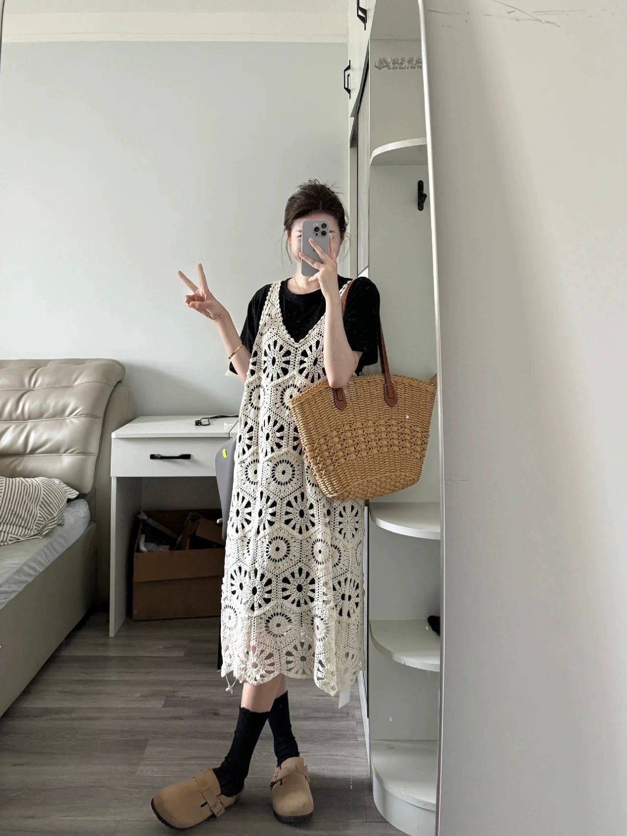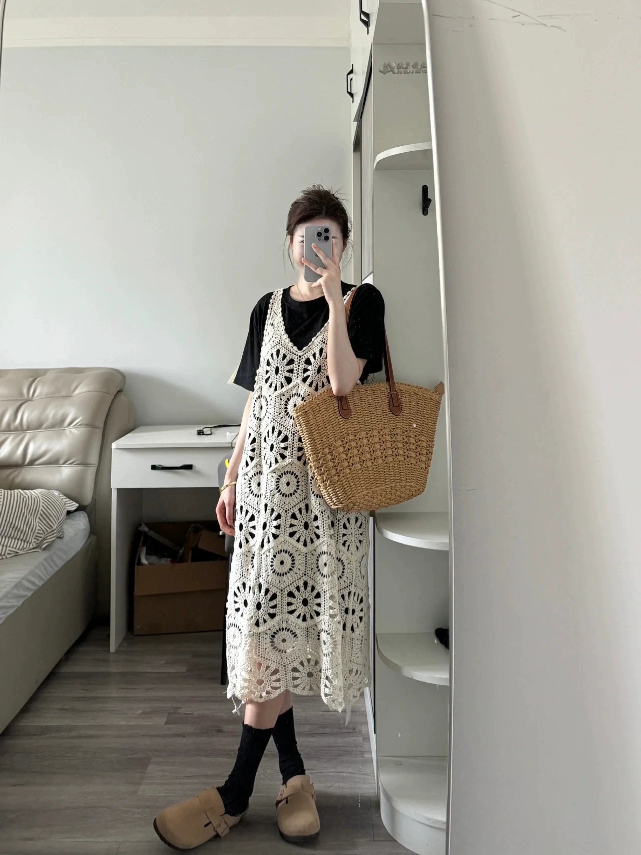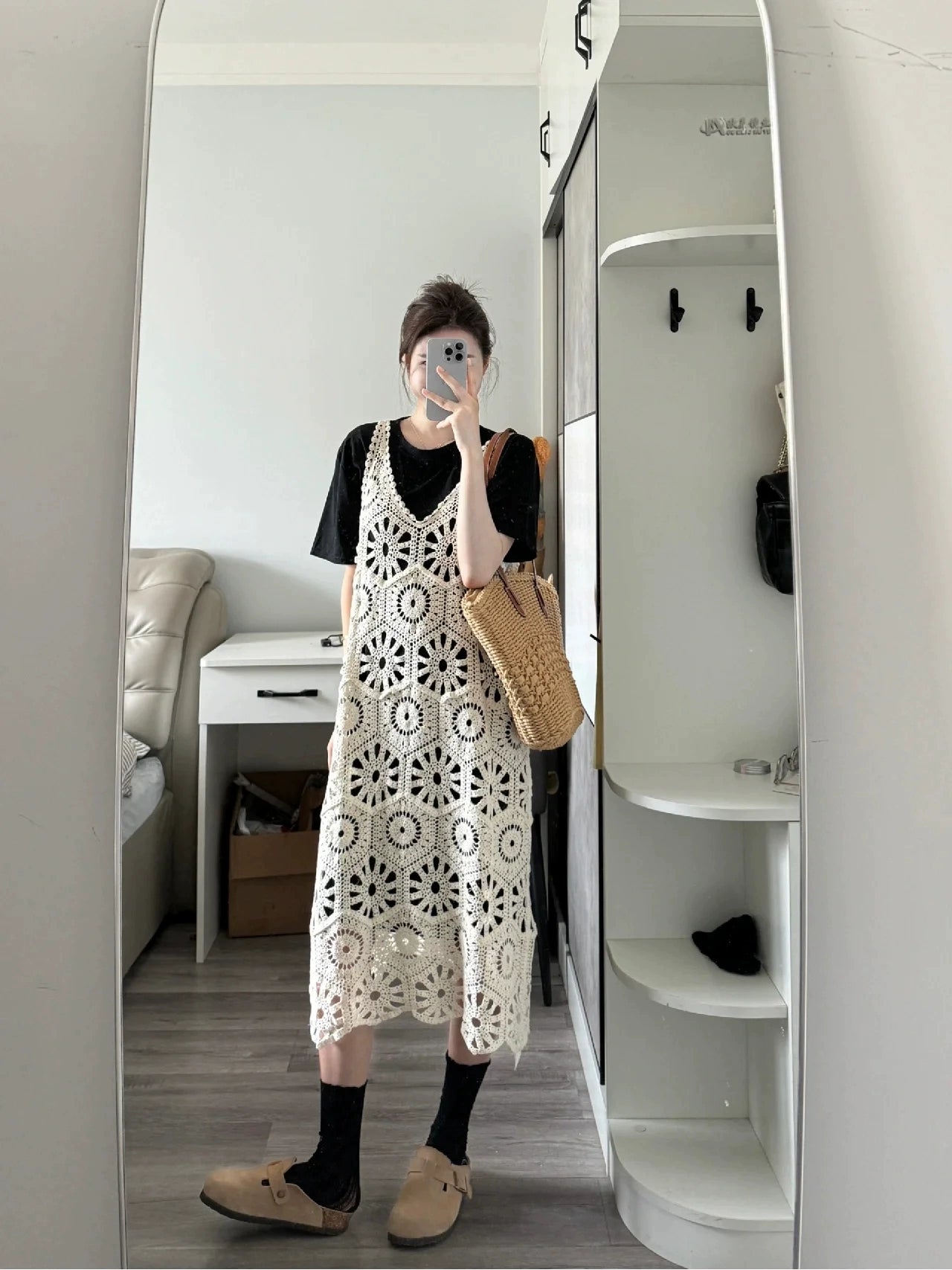 Maternity Summer Wear Hollowed Out Vest, Black Dress, Or Both: 2024 New Arrival