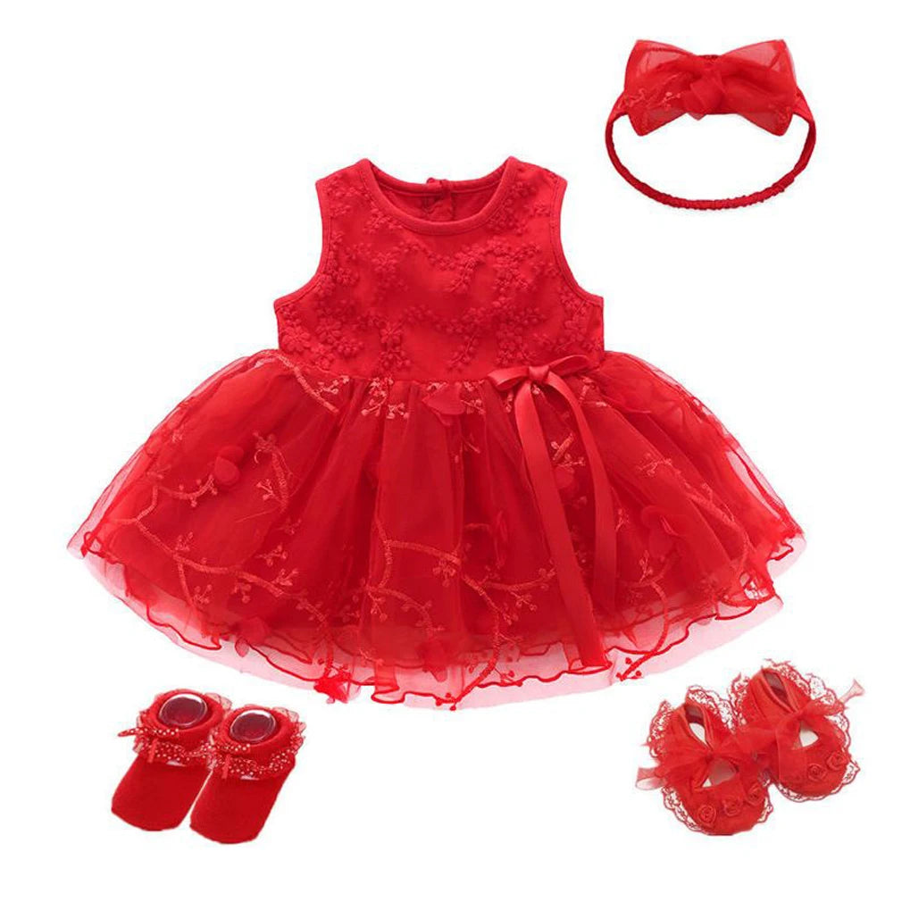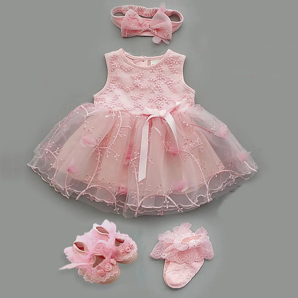 Newborn Baby Girl Party Outfits White Baptism Dress Shoes Set