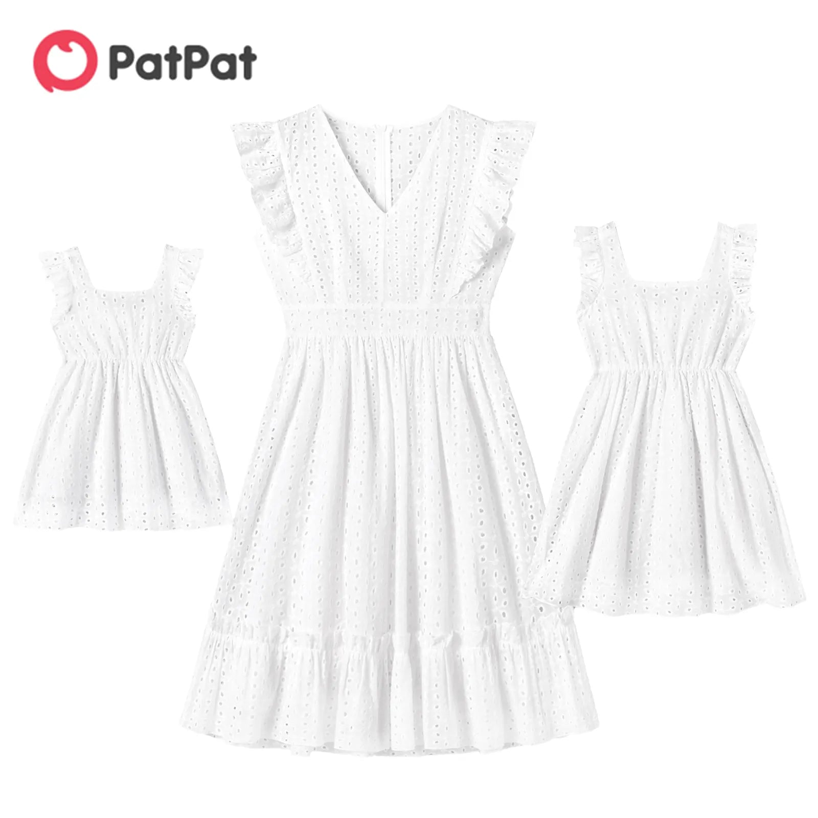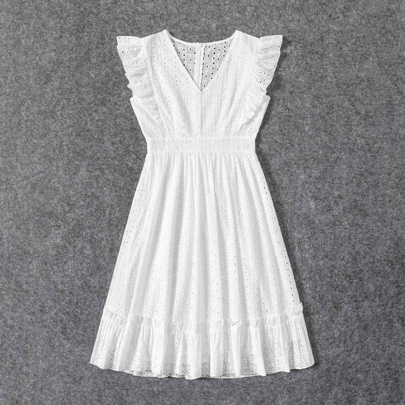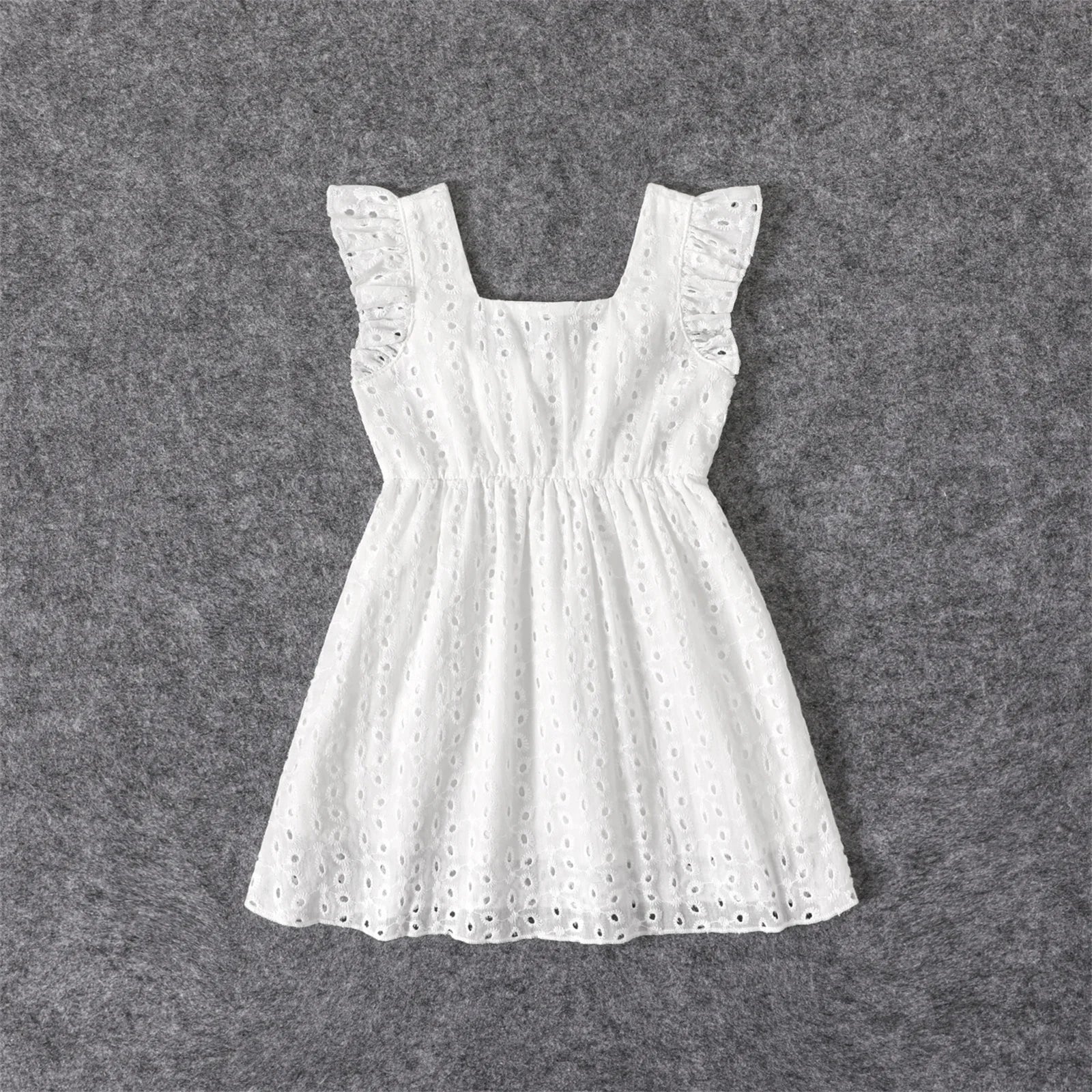 Product Introduction: Exude simple and exquisite vibes with our 100% cotton white hollow-out floral embroidered ruffle sleeveless dress for mom and me, perfect for weddings, vacations, parties and daily wear. Fabric: Made of premium 100% cotton fabric composition ratio, this skin-friendly soft and breathable dress is perfect for summer.