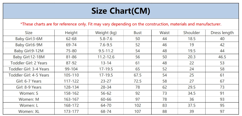* Piece of product: 1 dress per size.