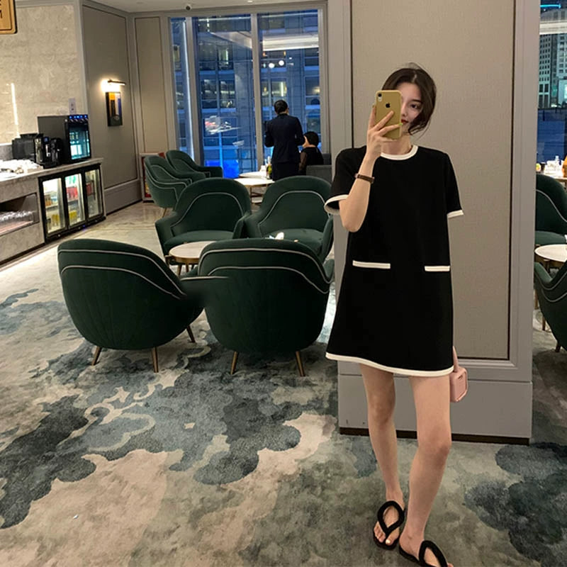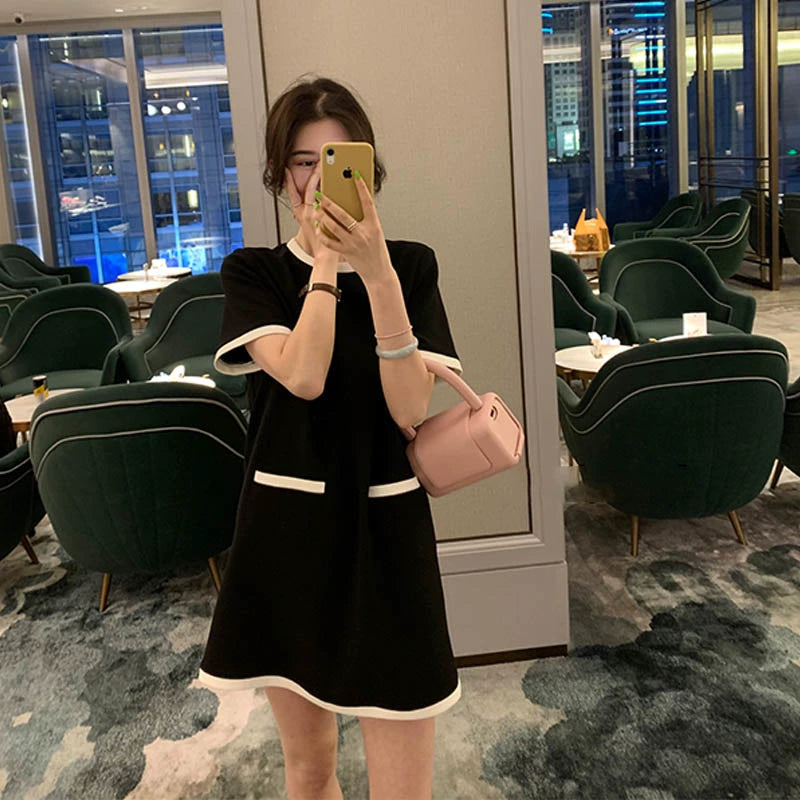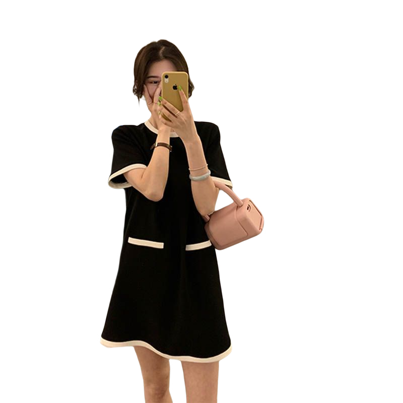 French Ice Silk Retro Hepburn Style Little Black Maternity Dress: Summer Short-Sleeved Short and Small Stature With Thin Knitting