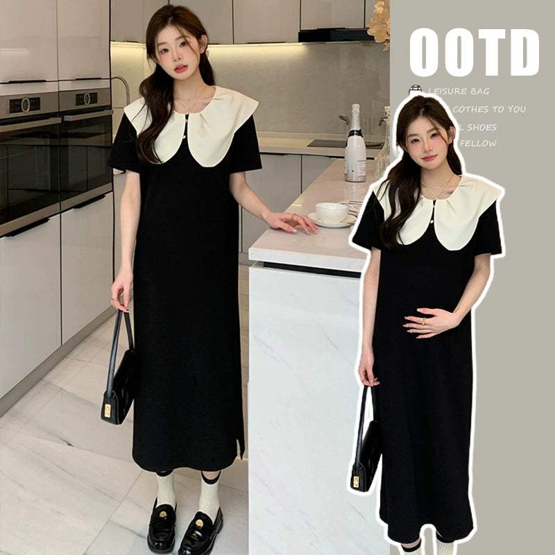 Doll Collar Maternity Dress & Safety Pant Separates: Slimming, Short Sleeve, Long Summer Dress 2024 New Arrival