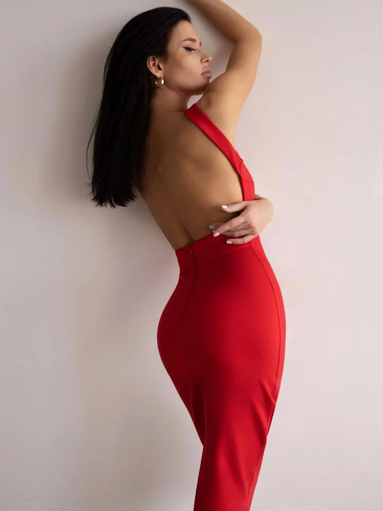 Elegant & Sexy Bandage Dress: Backless Bodycon Sleeveless Party Dress Summer Midi Evening Formal Celebrity Style