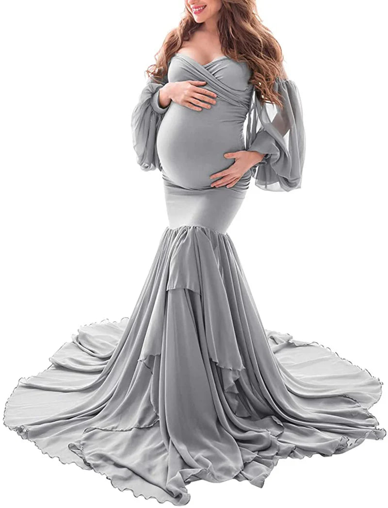 Mermaid Sexy Ruffles Shoulderless Maternity Maxi Gown For Photo Shoot