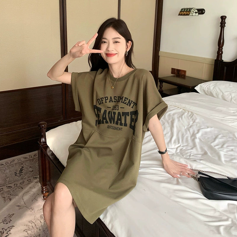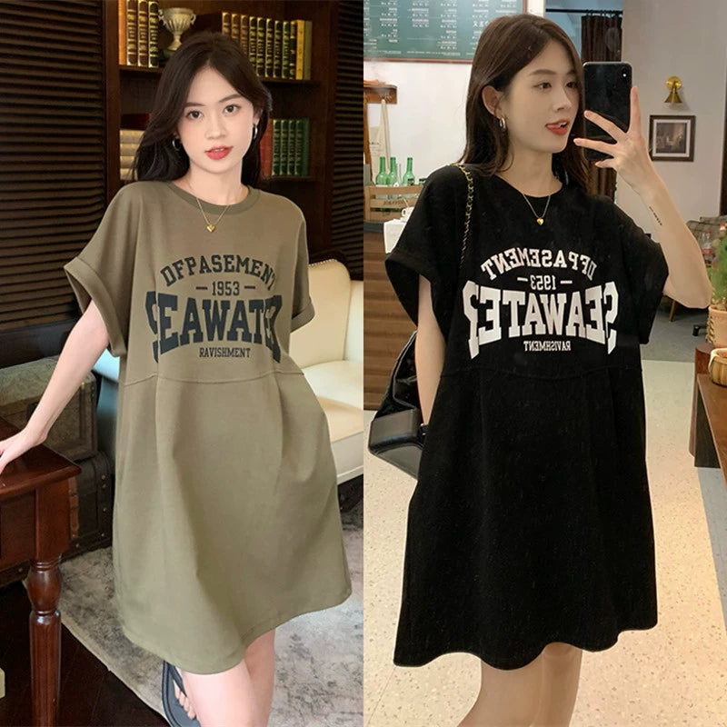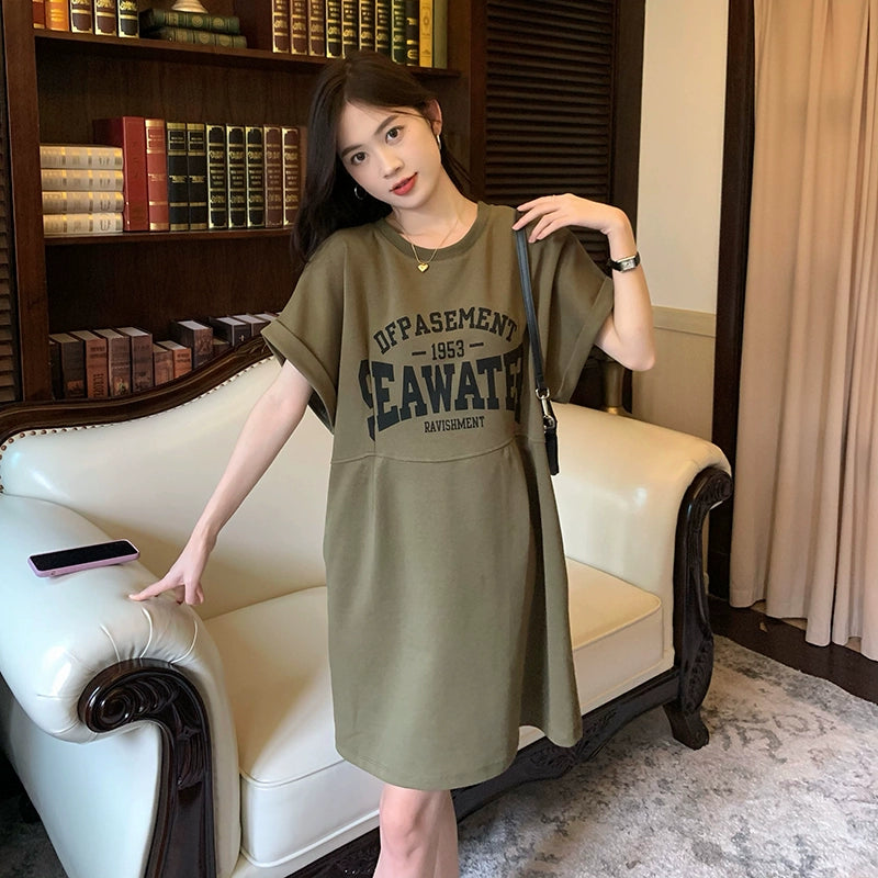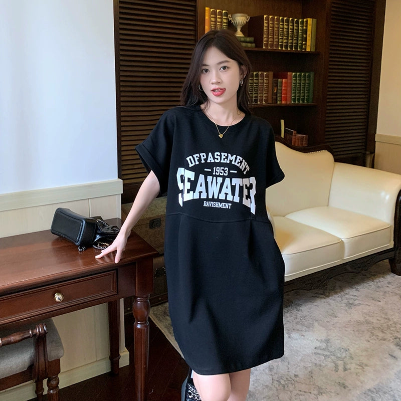 Fashionable Letter Jacket Style Pure Cotton T-shirt : Maternity Slim Looking New Arrival Plus Size