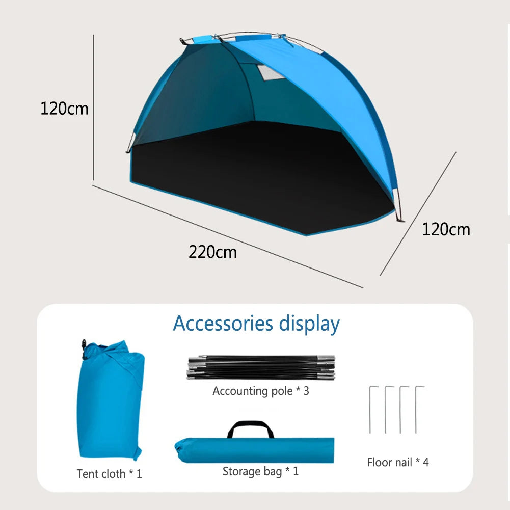 Transform your beach day, picnic, or camping trip with our Beach Sun Shelter Tent! Designed for maximum comfort and convenience, this sunshade tent is your perfect outdoor companion for relaxing in the sun or taking a break from the heat.