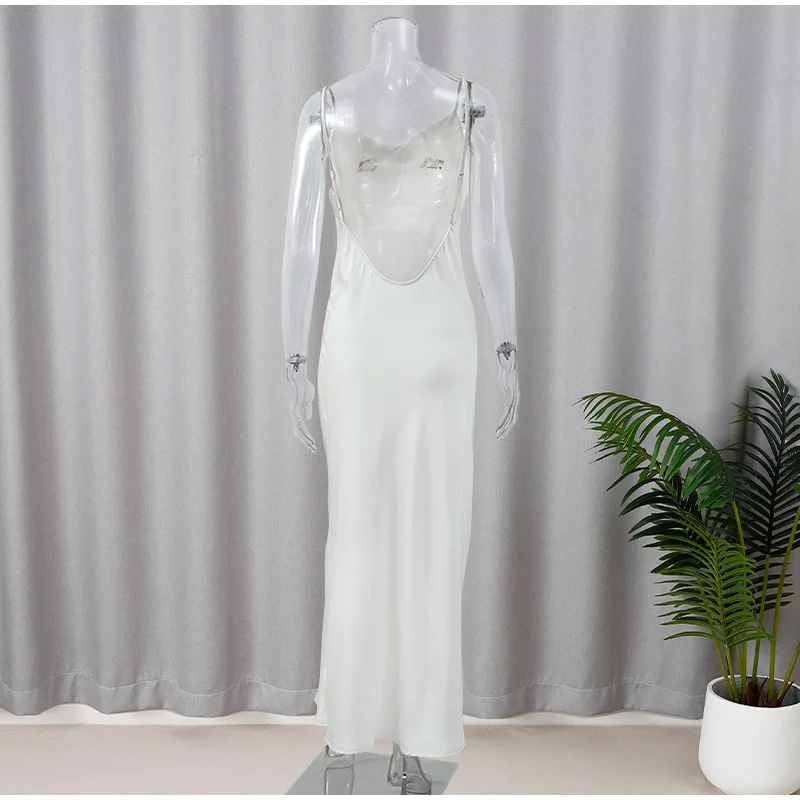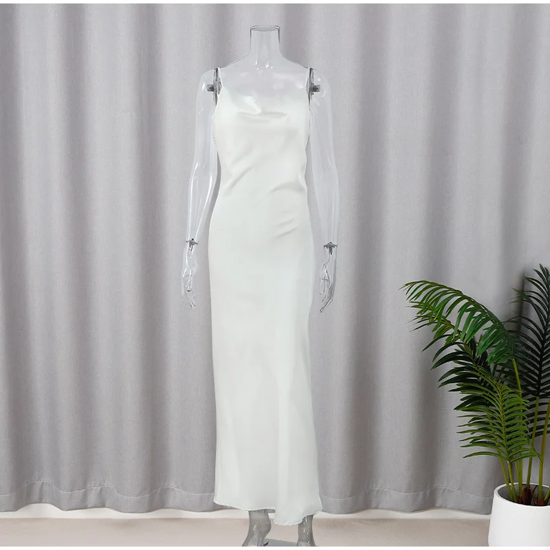 White Satin Sling Dress: Sexy Sleeveless Bodycon For The Beach Or On Holiday Summer 2024